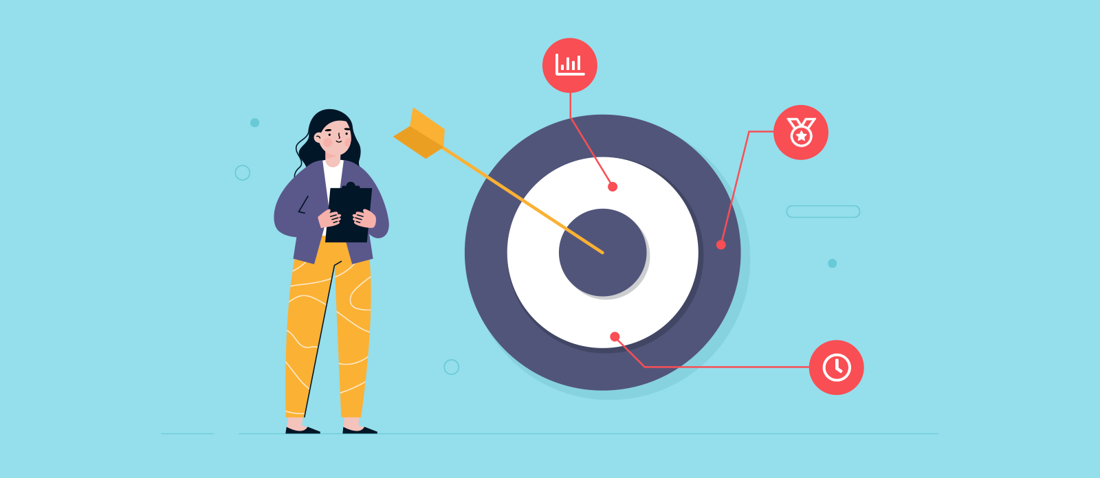 Goals can be impacted by so many outlying factors, like related projects, events, and teams. That’s why it’s smart to set a deadline for meeting your goal. This not only keeps your goal measurable and realistic. It also keeps everyone involved aligned on what needs to be accomplished and when.